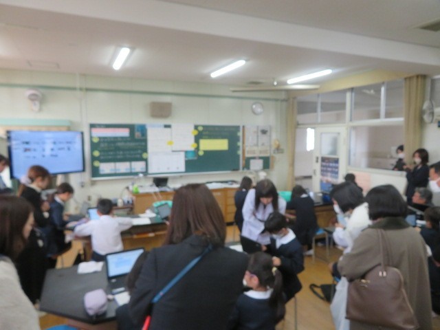 生成AIを使用した大阪市全体の公開授業がありました。児童の学びを支えるためにAIをどのように活用するか、教職員一丸となって研究を進めてまいりました。今後も時代の流れの中で新しい課題に前向き取り組み、日々の教育活動、日々の研究と修養に励み、児童と共に学びながら私たちも成長していきたいと考えています。