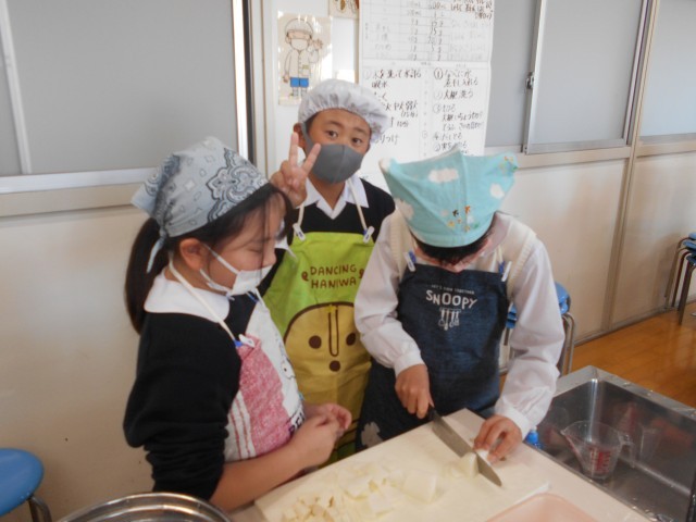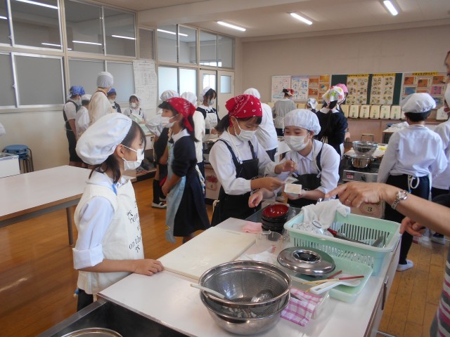 今回はご飯とみそ汁を作りました。調理実習も慣れてきて班での協力もばっちりです。