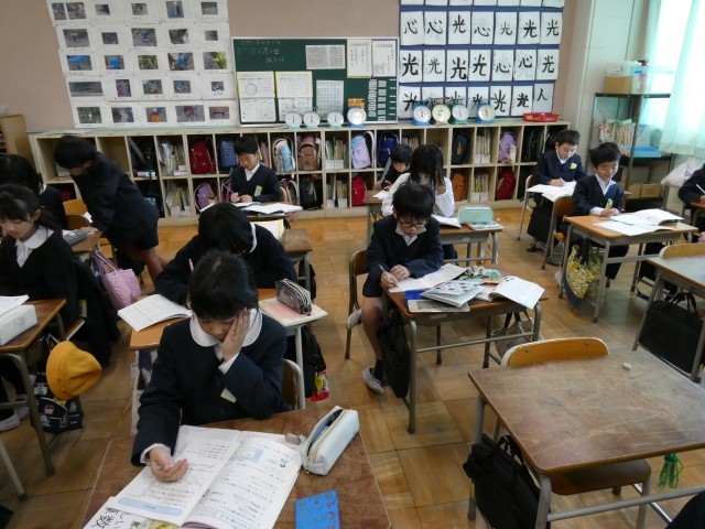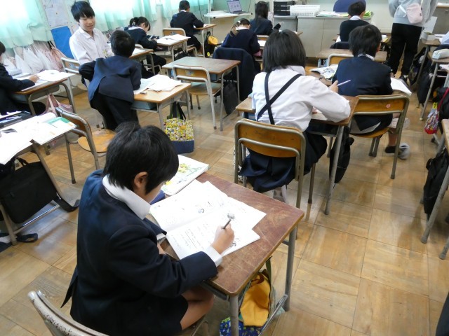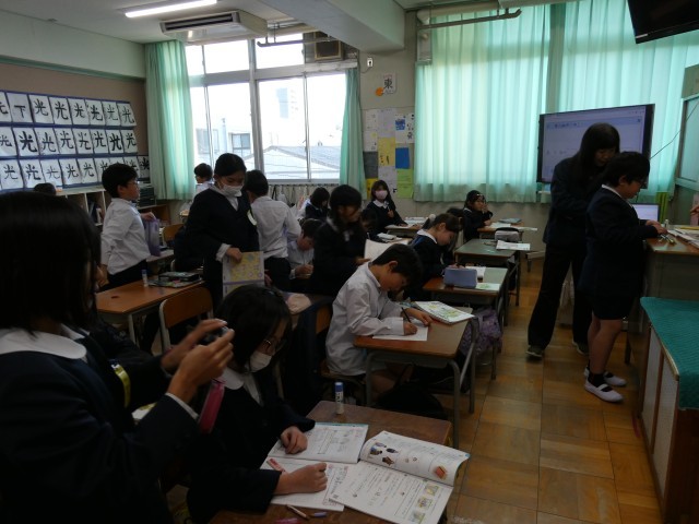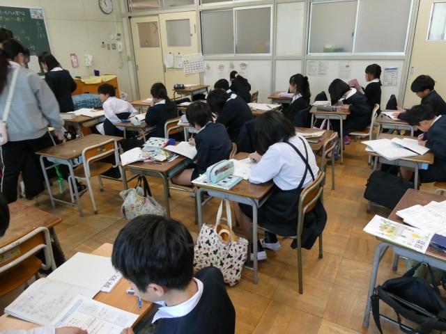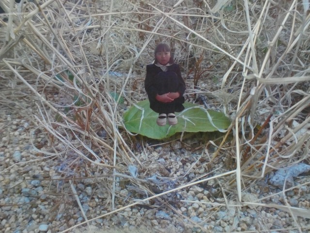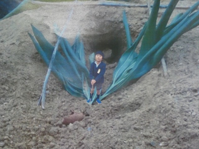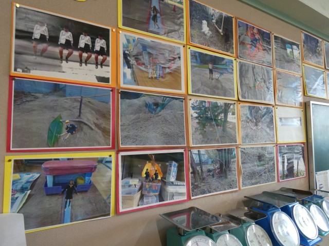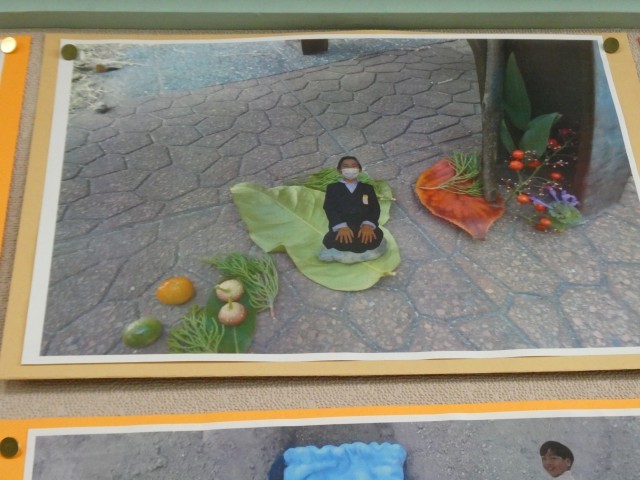 自らが小さくなって葉っぱに乗っていたり土に空いた小さな穴に入っていたりする作品が掲示されていました。これは、自分の写真を端末に取り込んでAIを使って切り抜いたものを背景に合成させています。個人懇談会の際にぜひご覧ください。