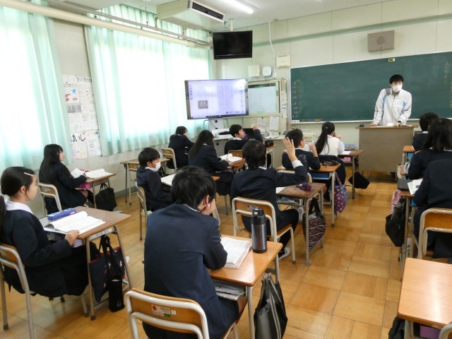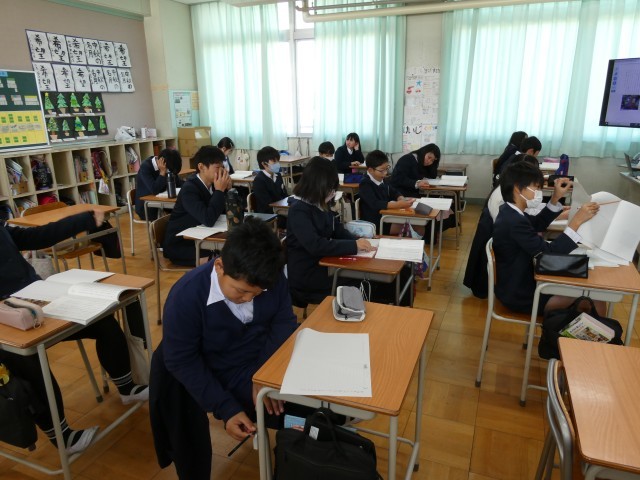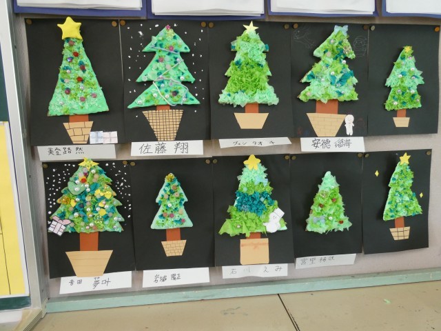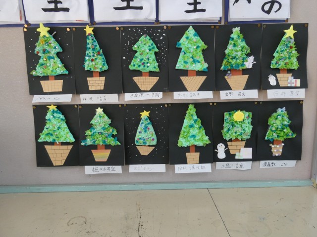 教室に行くと国語の学習をしていましたが、後方掲示板にはクリスマスツリーが!落ち着いていてカラフルで素敵なツリーです。個人懇談会の際にご覧ください。