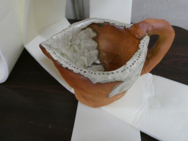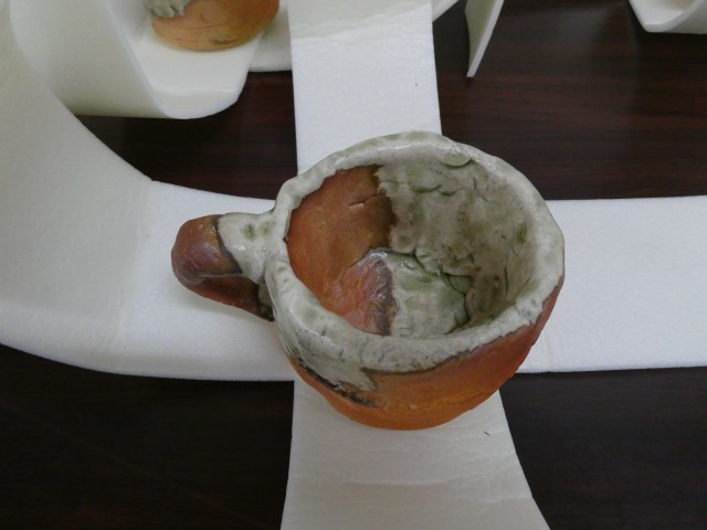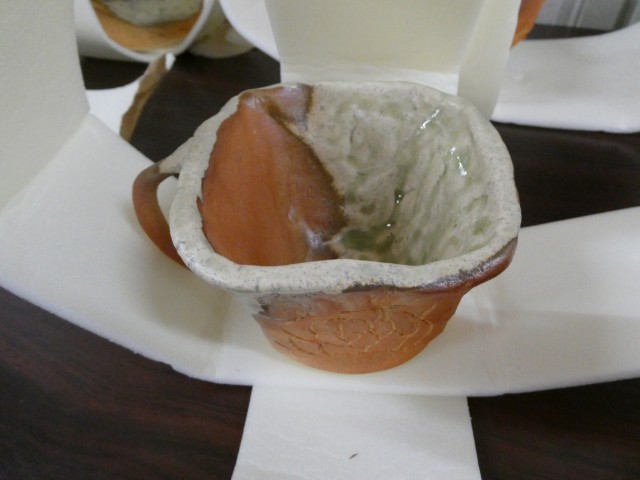 修学旅行の時に体験した信楽焼ですが、焼きあがって学校に届きました。個性豊かな作品ばかりで見ていて楽しいです。今日持ち帰っていますので、ぜひご覧ください。