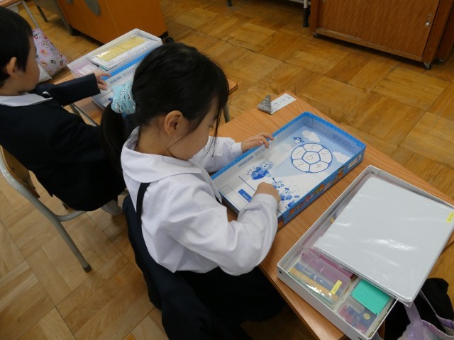 算数セットの箱の裏についていたゲームをペアで楽しみました。