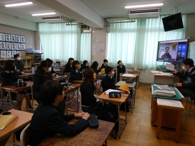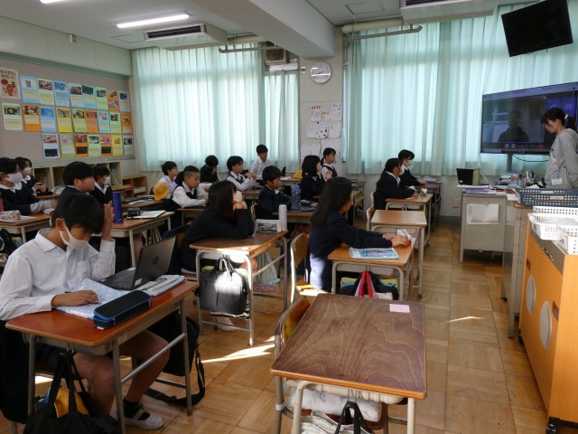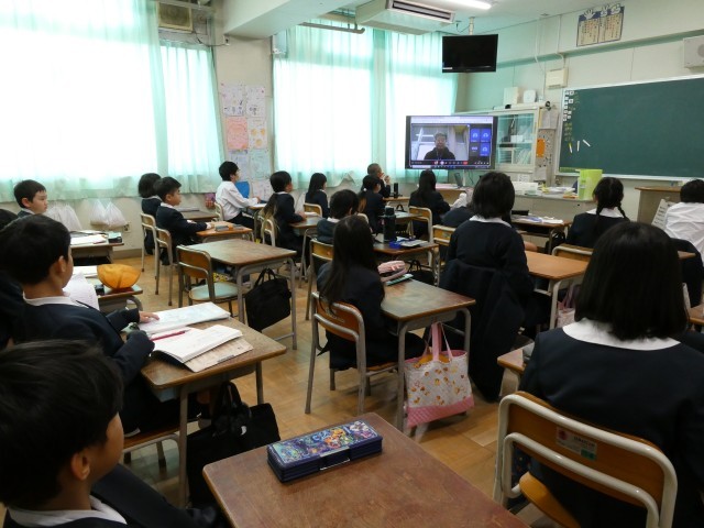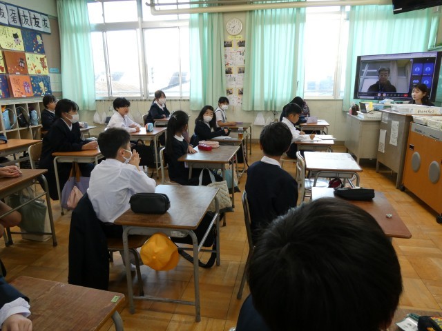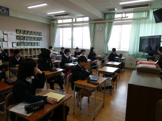 それぞれの学級で集中してモニターを見ています。教頭先生の話をしっかりと聞いています。冬至にはかぼちゃを食べる、ゆず湯に入るなど、古くから伝わる習わしがあります。体を温め、寒さに負けない体をつくるための知恵がそこにあります。