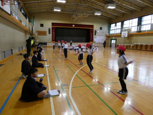 高学年の運動委員会のメンバーに回数を数えてもらい、次はその記録を超えるように練習をがんばっていきましょう。体力の向上と技能の習得をめざします。