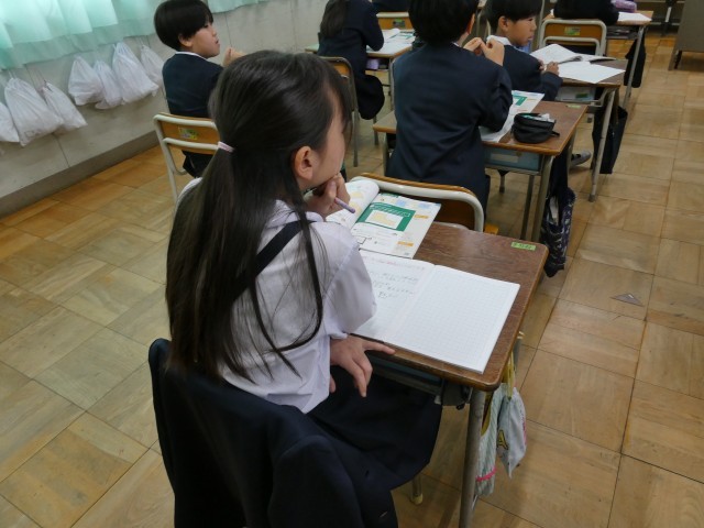 面積と横の長さがわかっている長方形の縦の長さを求める学習を行っています。以前学習しているたて×よこ=面積という公式を活用して計算できないか・・・考えて発表することができました。