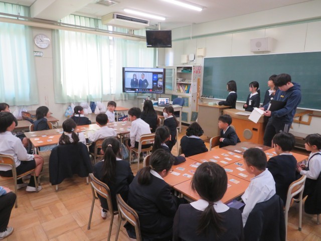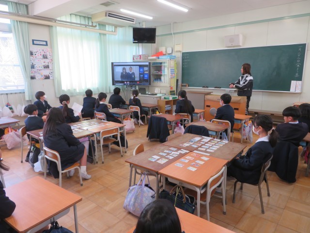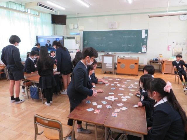 今年は各教室でかるた大会を行います。児童会メンバーがかるたの読み札を担当します。オンラインかるた大会でも、集中して取り組むことができています。