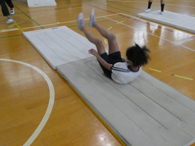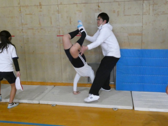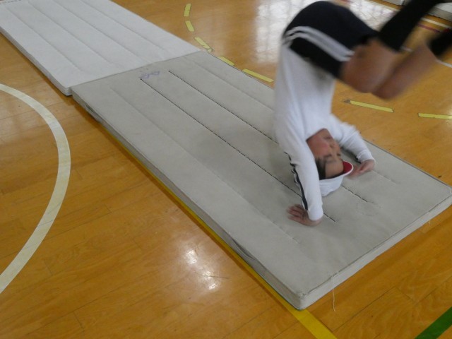 倒立や前転など練習をしています。倒立するために足を振り上げますが、壁も近く恐怖感もあり克服するためには練習あるのみ!頑張れ5年生
