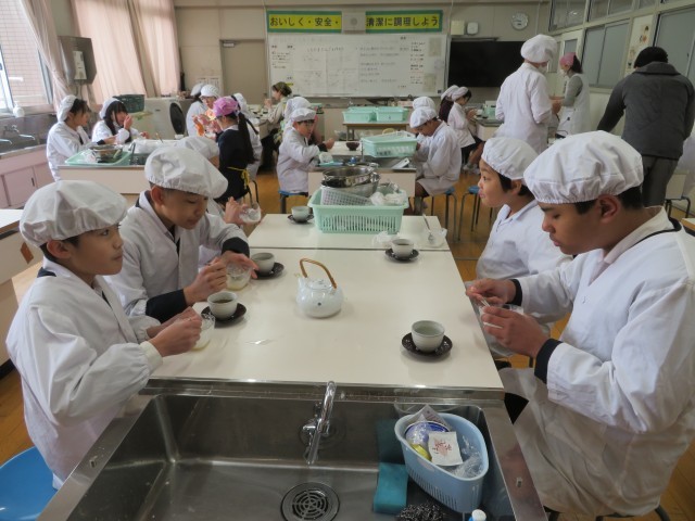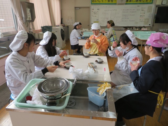 調理実習を通して、調理法の学習や、調理器具の使い方、配膳の仕方、洗い物、片付けの仕方など、様々なことを学習することができました。刃物や火を扱う学習ですので、安全に学習すること、協力して取り組むことでがとても重要になりますが、そこはさすが6年生です。手順良く頑張っていました。