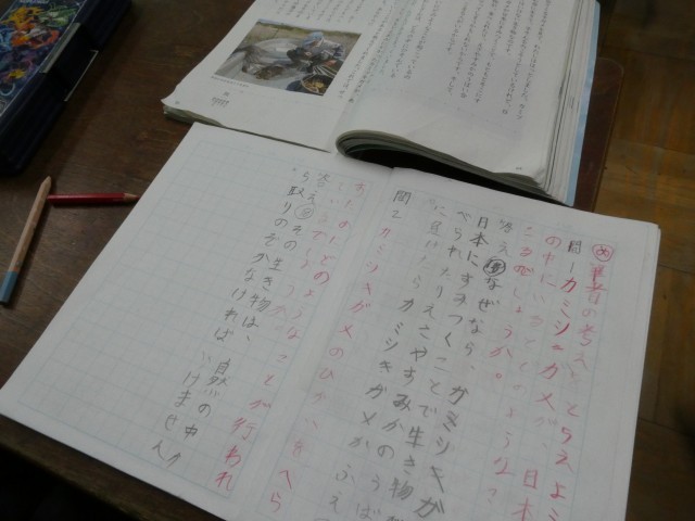 カミツキガメについて書いてある説明文ですが、理由や対策について書かれている箇所を自分で考えてノートに書きました。筆者が何を伝えたいのか物語文と一緒でしっかりと考えて書こうとしています。