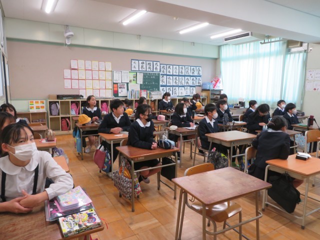 5年生も真剣に校長先生の話をきいています。5-2教室と、校長先生で、リモートでのやりとりがありました。