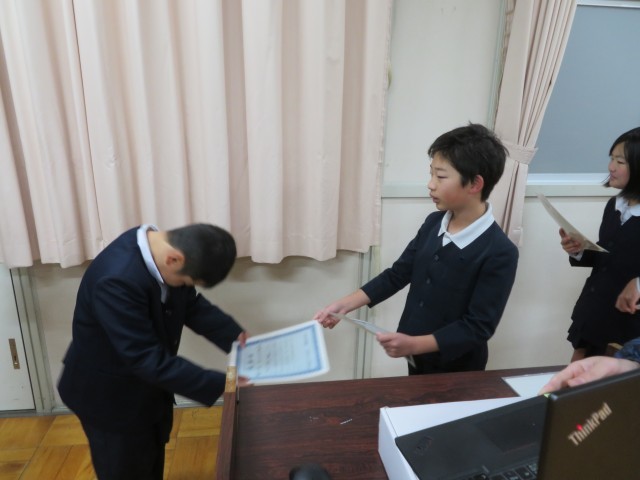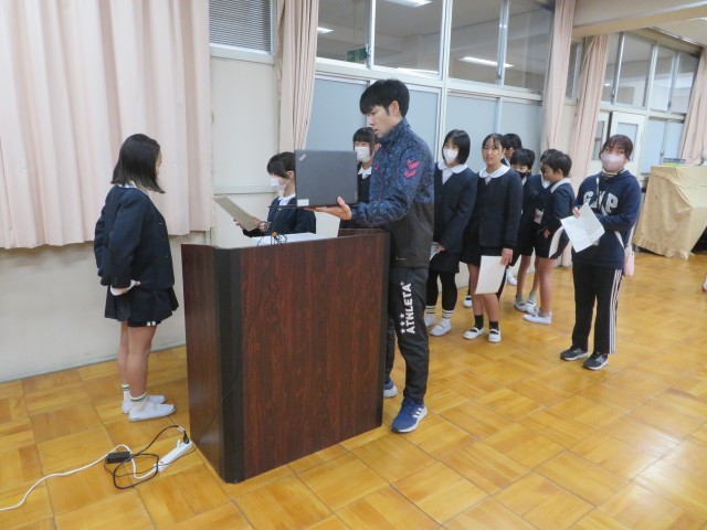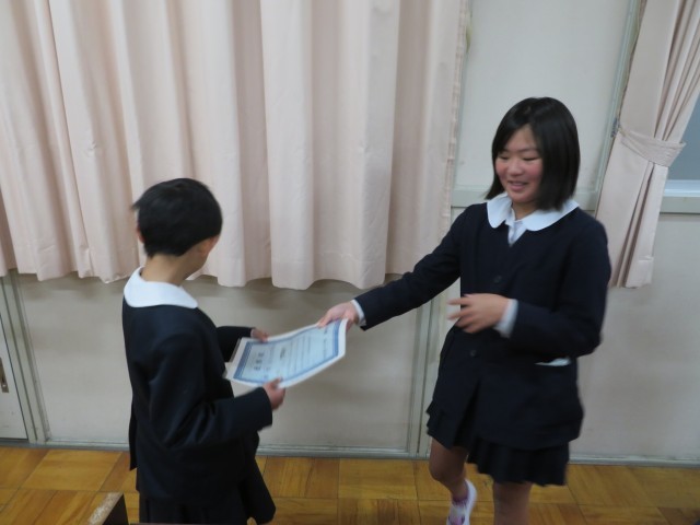 表彰式の最後に、運動委員会からのお願いがありました。チャイムが鳴ったらすぐに遊びをやめて、次の学習に間に合うように手洗いをして、教室へ戻りましょう。「よく遊び、よく学ぶ」そのための準備をしましょう。学習時間も休憩時間もどちらも同じように大事です。
