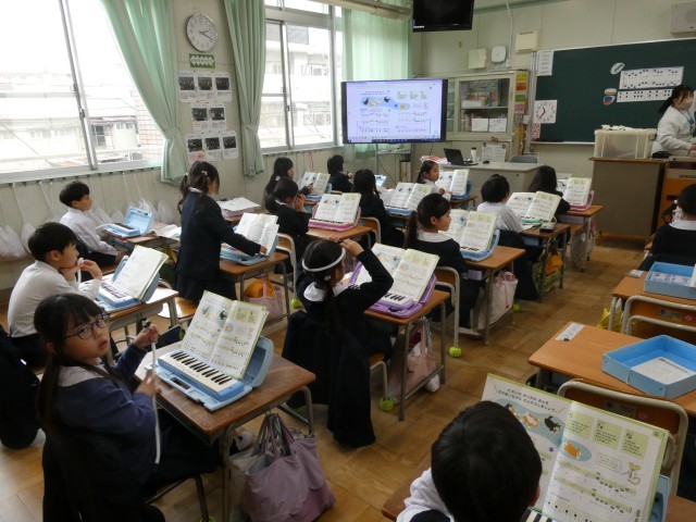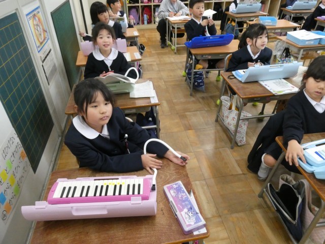 鍵盤ハーモニカを練習しています。「ド」の指は・・・「ミ」は・・・と探すことも少なくなり上手に演奏できる児童も増えてきました。
