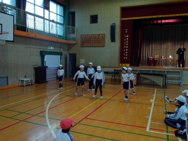 曲の一部の振り付けを自分たちで考え、発表し合いました。