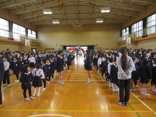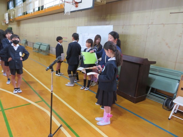 今日の集会は、ありがとうよろしく集会です。地域の見守り隊として児童の安全な登下校をサポートしてくださっている皆様へ、感謝の気持ちを伝えます。