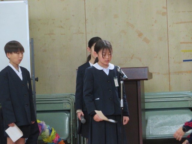 見守り隊代表の方は、およそ70年前の柏里小学校の卒業生で、その当時は子どもたちも朝の見守り隊で、玉ねぎ屋さんの前あたりで立ってあいさつ活動をしていたということでした。現在の児童会のあいさつ週間のようなものでしょうか。その当時の下級生が、焚火で温めた石をハンカチにくるんでプレゼントしてくれたんだと話をしてくださいました。ありがとうよろしく集会のたびにその時の思い出がよみがえるそうです。昔のお話からも学ぶことがたくさんありました。