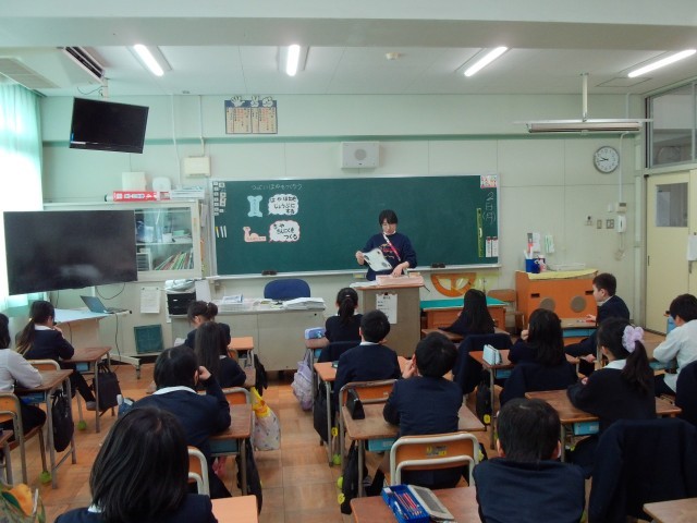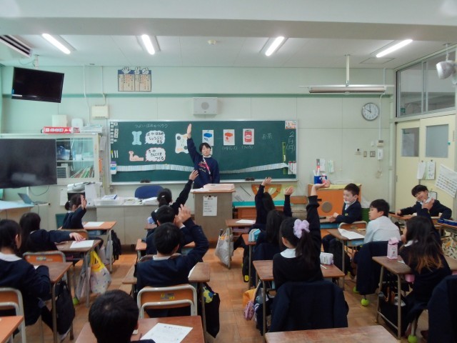 栄養教諭の岩野先生が来てくれ、「強い骨を作ろう」をテーマに学習しました。カルシウムの大切さや牛乳に多くカルシウムが含まれていること、牛乳以外からもカルシウムが摂れることを学びました。