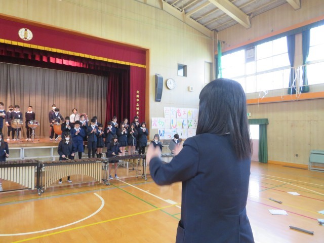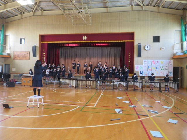 在校生への合奏と歌のプレゼント。直前まで丁寧に練習しました。