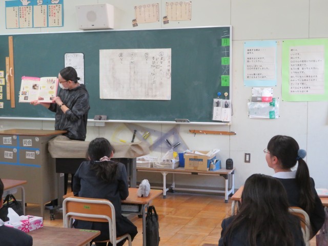 4年生はネパールのことがよくわかる絵本の読み聞かせでした。異文化に触れ、自分たちの文化を再確認する良い機会となりました。あいさつの言葉も覚えられるよう頑張ります。