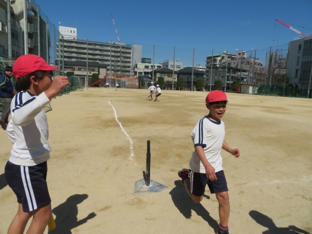 みんな元気に打って走ってます。守備側も捕ってどうするか。攻撃側もどこを狙って打つか、バットの操作も、体の使い方も練習を重ねて上達してきました。