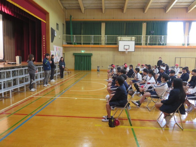 運動場でのスポーツフェスティバルの後は、講堂に移動して、元担任の先生方から一言メッセージを聞きました。転勤された元担任の先生方からも、卒業お祝いメッセージがあり、6年生にとっては6年間の思い出が一気によみがえってくる時間となりました。全教職員で6年生のお祝いを祝福し、「With you smile」の歌のサプライズプレゼットをしました。残りあと5日、がんばりましょう!