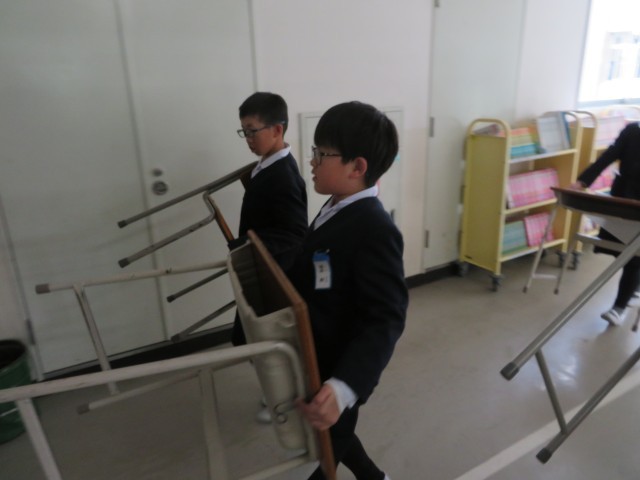 修了式後机椅子移動