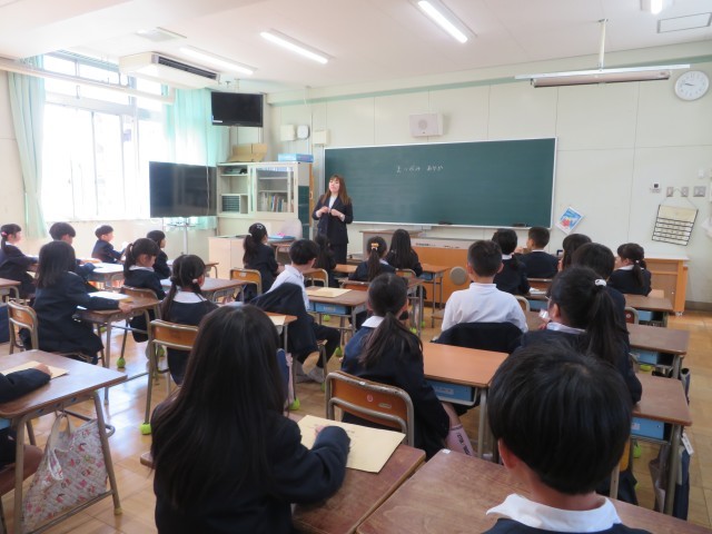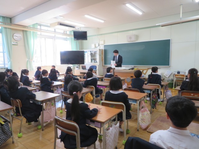 新2年生、新しい担任の先生の話をしっかり聞いています。