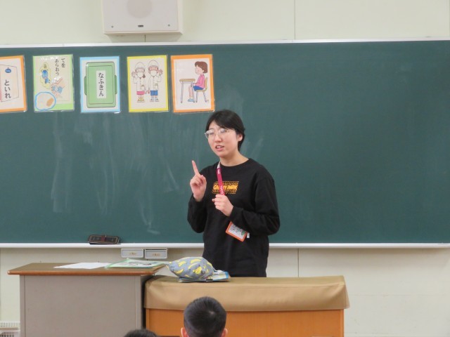初めての給食の前に、栄養教諭が準備や用意することなどの話をしています。ドキドキの給食だったと思います。ご家庭でも話題にしてみてください。24日(金)は1年生は給食参観です。