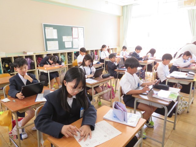 国語の語句調べ、社会の国旗調べをがんばっています。