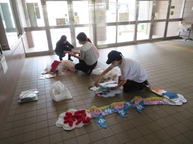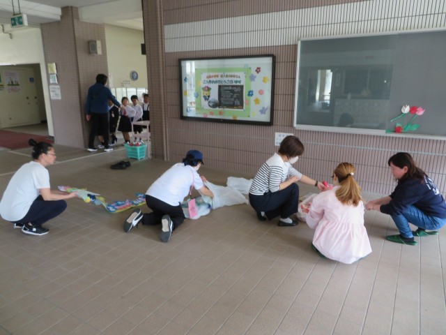 新1年生の入学おめでとうの玄関掲示は図書ボランティアの皆様による作品です。本日片づけていただきました。読書タイムの読み聞かせや、玄関掲示へのご協力、いつも子どもたちのためにご尽力いただき感謝しています。今年度も盛りだくさんの活動になりますが、よろしくお願いいたします。