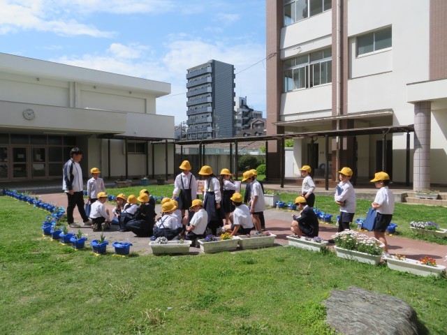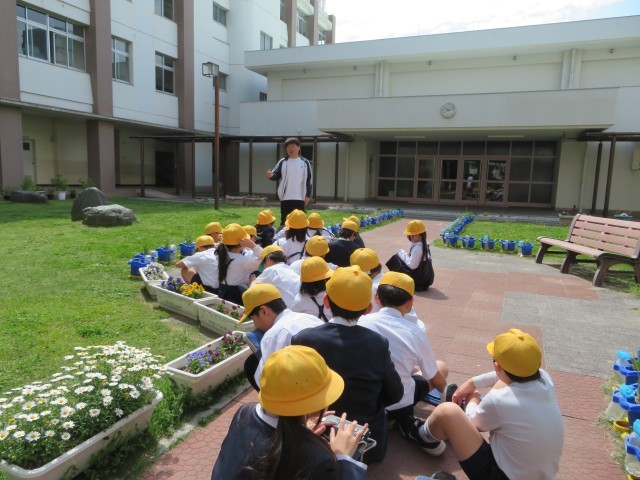 中庭、学習園の春の自然を探しにいきます。
