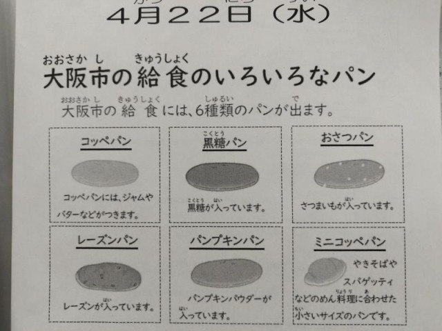 給食のパンは必要なエネルギー量に合わせて、低学年、中学年、高学年の3段階で大きさを調整しています。