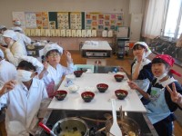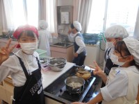 今回はご飯とみそ汁を作りました。調理実習も慣れてきて班での協力もばっちりです。
