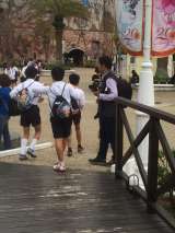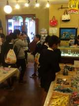 友達と相談しながらおみやげを選んでいます。みんなすごく悩みながら選んでいます。