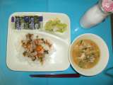 かやくご飯 みそ汁 はくさいのゆず風味 かやくご飯は、いろいろな具を加えると...