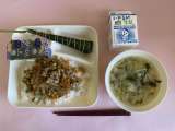 【今日の献立】 ・きんぴらちらし ・すまし汁 ・ちまき ・牛乳