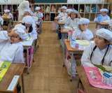 6年生に給食の運搬サポートをお願いしていた1年生も、自分たちで運搬、準備をできる...