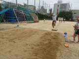 踏切板や小型ハードルなど、工夫された場で踏み切りや高く跳ぶこと、空中姿勢、着地...