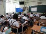 宿題の発表会を行っています。写真の児童は「ミニ四駆」についておうちの方に聞きなが...