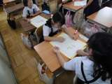 教室には夏休みの思い出新聞や自由研究が掲示されています。