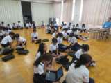 運動場は暑いので、多目的室でダンスの練習を行いました。1年ぶりのダンスですが、少...