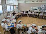 みんなと一緒に勉強した教育実習生の先生との最後の給食です。みんなの顔が見えるよう...