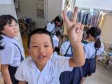 外で元気よく遊んでいます。学級遊びではルールを守って楽しく遊べるように考えていま...
