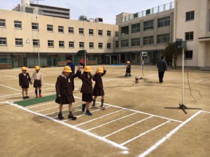 3年生と4年生は、遠足の班でまとまって交通安全について学びました。