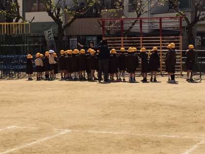 写真は、4年生の理科の授業と1年生の校内探検のようすです。