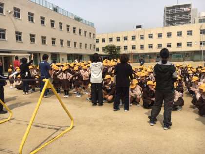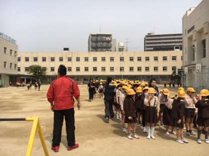 本日、理科室から出火の想定で、火災に対する避難訓練を行いました。
