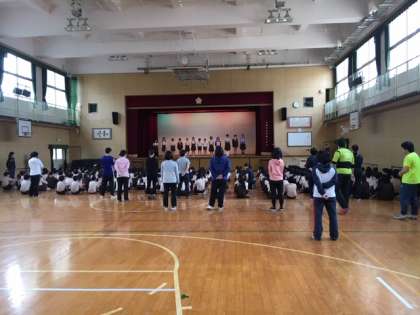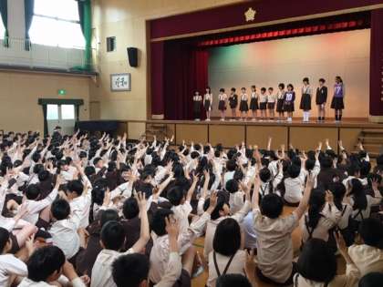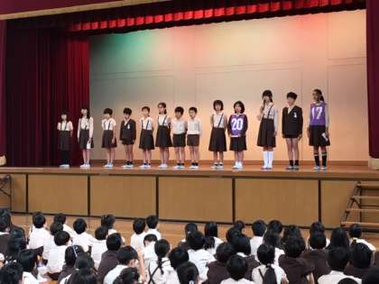 縦割り班のの編成はまだなので、児童朝会の隊形で集まりました。