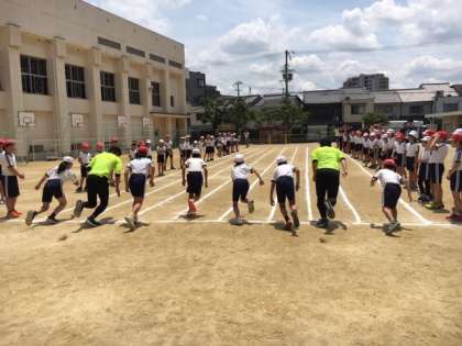 その後、運動場で短距離を速く走ることができるような練習メニューを多く示していただきました。一緒に走っていただいたりして、子ども達も楽しく・一生懸命取り組んでいました。