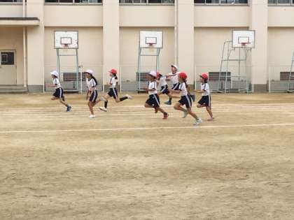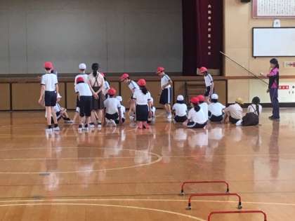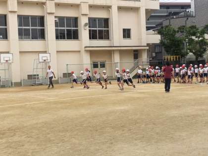 6年生の「反復横とび」と4年生の「50m走」の練習のようすです。
