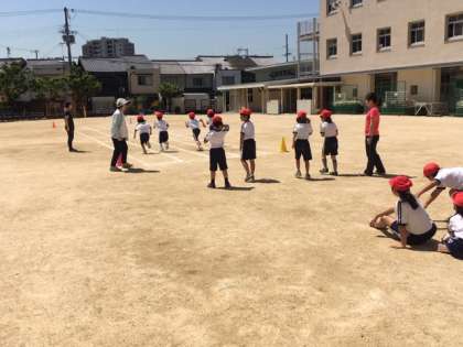 1年生も体育の授業で、一生懸命走りました。