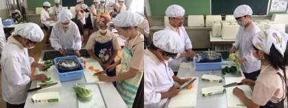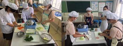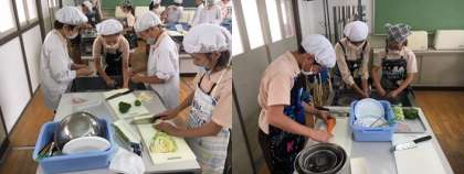 本日3・4限目、6年2組が調理実習を行いました。